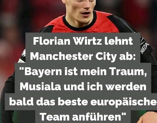 TRANSFER-BOMBE! Florian Wirtz sagt NEIN zu Manchester City und zündet in Deutschland ein Mega-Feuerwerk! Der 21-jährige Bayer-Leverkusen-Star enthüllt: „Bayern ist mein Traum! Ich will hier bleiben und zusammen mit Musiala das beste europäische Team anführen.“ Mit diesen Worten hat Wirtz nicht nur den Fußball-Transfermarkt erschüttert, sondern auch ein klares Signal für die Zukunft des deutschen Fußballs gesetzt. Was sich in den letzten Wochen angedeutet hatte, ist nun Gewissheit: Der wohl begehrteste deutsche Youngster bleibt in der Bundesliga – und das mit einem klaren Ziel vor Augen.