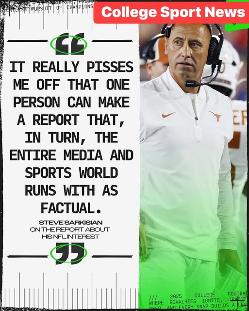 In the end, Sarkisian’s anger wasn’t just about a headline. It was about principle, pride, and purpose. It was about defending a vision that’s finally taking shape. For a man who’s fought his way back into the spotlight, loyalty matters. And in his own words, his heart — and his future — are in Austin, Texas. The message was loud and clear: Steve Sarkisian isn’t going anywhere.
