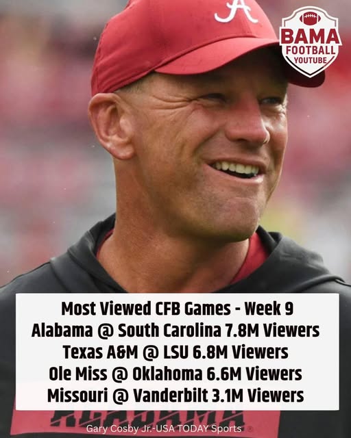 As the season continues, the numbers from this game will serve as yet another testament to Alabama’s unparalleled magnetism. They don’t just win games—they win attention, respect, and cultural relevance. Week after week, they prove that no matter who they play, no matter where they play, people will watch. The crimson tide doesn’t just roll across the field—it rolls across the nation, dominating ratings and redefining what it means to be a true powerhouse.