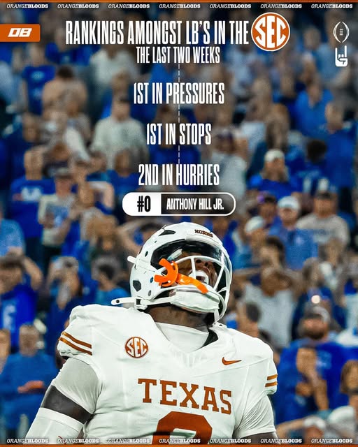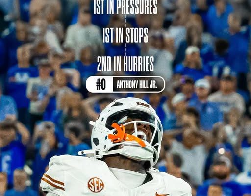 For now, though, Hill’s focus remains singular — leading his team, making plays, and doing whatever it takes to bring glory back to Austin. In a sport defined by moments, he’s creating his own legacy, one hit, one tackle, one dominant performance at a time. The past two weeks have been a statement — not just that Anthony Hill Jr. has arrived, but that he might be the SEC’s next great defensive star.