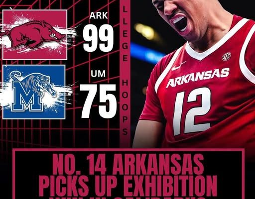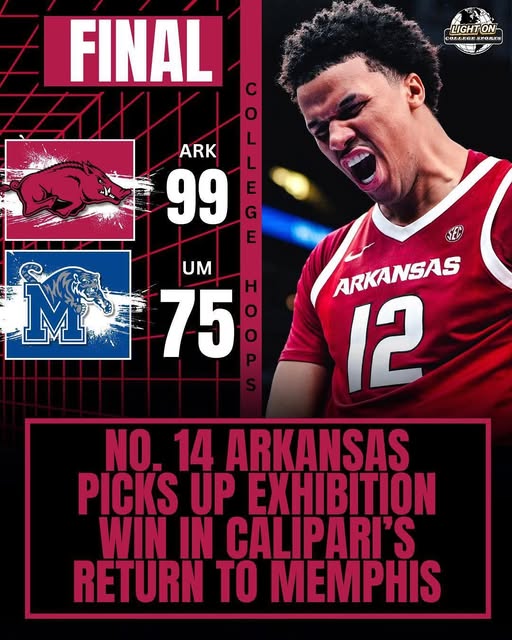 No. 14 Arkansas made a statement in their exhibition matchup Saturday night, not just by winning, but by doing so under the bright lights of FedExForum, a venue filled with memories for their new head coach, John Calipari. The 2025-26 Razorbacks looked sharp, cohesive, and ready for the grind of the upcoming college basketball season, but beyond the scoreboard, the game carried an emotional and symbolic weight. It was Calipari’s return to Memphis — the city where he built a basketball empire, and the fan base that still chants his name, sometimes with admiration, sometimes with resentment.
