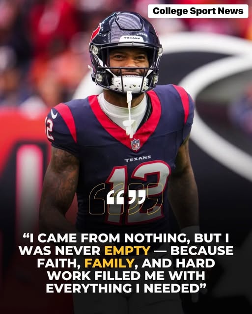 But success didn’t come overnight. Collins’s first seasons in the NFL were marked by adjustment, patience, and perseverance. Injuries tested his resolve, and competition was fierce. Yet, as he had always done, he stayed the course. By the 2023 season, his breakout performance silenced any doubts about his potential. He became one of the league’s most reliable receivers, consistently delivering clutch plays, earning the respect of teammates and opponents alike. His connection with rising quarterbacks helped ignite the Texans’ offense, but it was his maturity and humility that made him a locker room leader.
