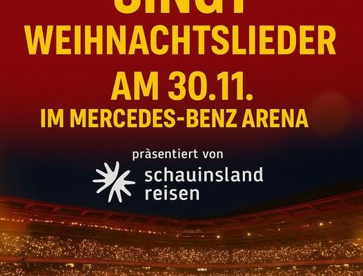 Festliche Stimmung in Stuttgart – die Stadt rüstet sich für ein musikalisches Highlight der ganz besonderen Art! Am 30. November verwandelt sich die legendäre Mercedes-Benz Arena in ein funkelndes Lichtermeer, wenn der VfB Stuttgart zum großen Mitsing-Event „Stuttgart singt Weihnachtslieder“ lädt. Ein Abend, der nicht nur Fußballfans, sondern die gesamte Region in seinen Bann ziehen wird – ein Fest der Gemeinschaft, der Musik und der besinnlichen Weihnachtsfreude. Unter dem Motto „Tausende Stimmen, ein Herz“ wird die Arena zu einem Ort, an dem Menschen zusammenkommen, um gemeinsam zu singen, zu lachen und den Zauber der Adventszeit zu feiern.