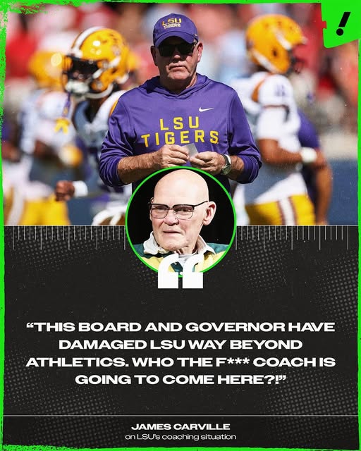 Carville’s voice, though often controversial, serves an important purpose. He represents the heartbeat of the LSU community—the alumni who demand excellence, the fans who expect grit, and the Louisianans who see the Tigers as a source of collective pride. Whether or not university officials heed his advice, his words have a way of sparking accountability. They remind those in charge that LSU is more than just an athletic brand—it’s a legacy built on hard work, identity, and unrelenting passion.