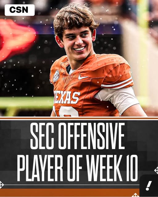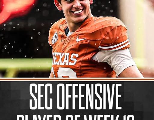The murmur that had followed Arch Manning from the moment he first gripped a football, a low and persistent hum of expectation, has finally been drowned out. It has been replaced by the crisp, definitive sound of a football spiraling through the air, the roar of a capacity crowd, and now, the official recognition from the most competitive conference in college football. The name Manning, synonymous with quarterbacking royalty, is being carved into the Longhorn legacy not by pedigree, but by performance. In a commanding display against the Vanderbilt Commodores, Arch Manning didn’t just play a game; he authored a statement, a 328-yard, three-touchdown masterpiece that announced his arrival not as a prospect, but as a premier SEC quarterback.