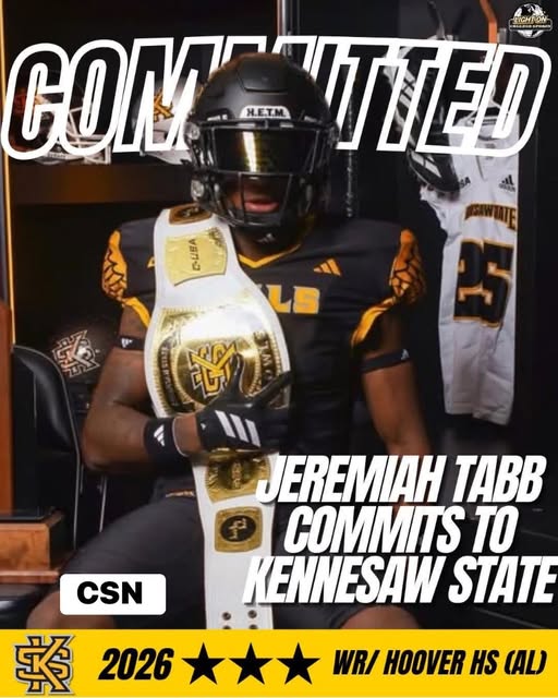 Kennesaw State’s football future just got a major boost. The Owls landed a verbal commitment from one of the top young wide receivers in the South, as 2026 three-star standout Jeremiah Tabb from Hoover High School (Alabama) announced his decision to join the program. The 6-foot-2, 190-pound playmaker chose Kennesaw State over offers from Arkansas, Memphis, UAB, and several others — a clear statement that the Owls are beginning to gain real recruiting momentum as they continue to establish themselves on the national stage.