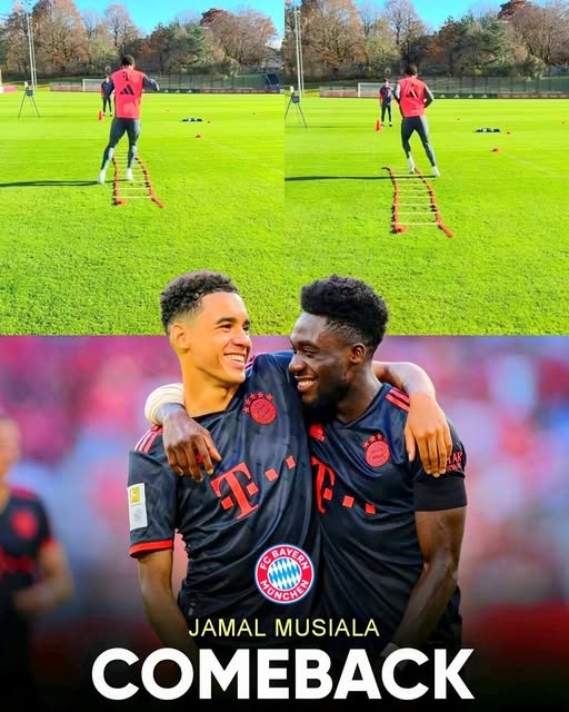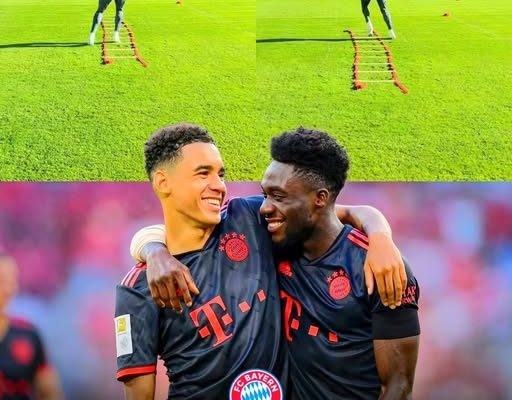 An einem kühlen, aber sonnigen Vormittag an der Säbener Straße herrschte eine Stimmung, die Bayern-Fans seit Wochen herbeigesehnt hatten. Zwischen den vertrauten Rasenflächen, den roten Trainingsleibchen und dem Summen der Kameras war etwas Besonderes in der Luft – etwas, das Hoffnung und Vorfreude vereinte. Denn mitten in der Reha-Phase, die sich bereits über Wochen hingezogen hatte, stand endlich wieder ein vertrautes Gesicht auf dem Platz: Jamal Musiala. Der junge deutsche Superstar, der wegen einer hartnäckigen Muskelverletzung zuletzt pausieren musste, absolvierte seine ersten intensiveren Einheiten mit dem Ball – unter den wachsamen Augen von Reha-Trainer Simon Martinello. Doch er war dabei nicht allein. Am Spielfeldrand stand sein enger Freund und Mannschaftskollege Alphonso Davies, der jede Bewegung, jedes Dribbling und jedes Lächeln mit seinem Handy festhielt. Es war ein Moment, der sinnbildlich für die Freundschaft, den Teamgeist und die Sehnsucht nach einem Comeback zweier der größten Bayern-Hoffnungen stand.