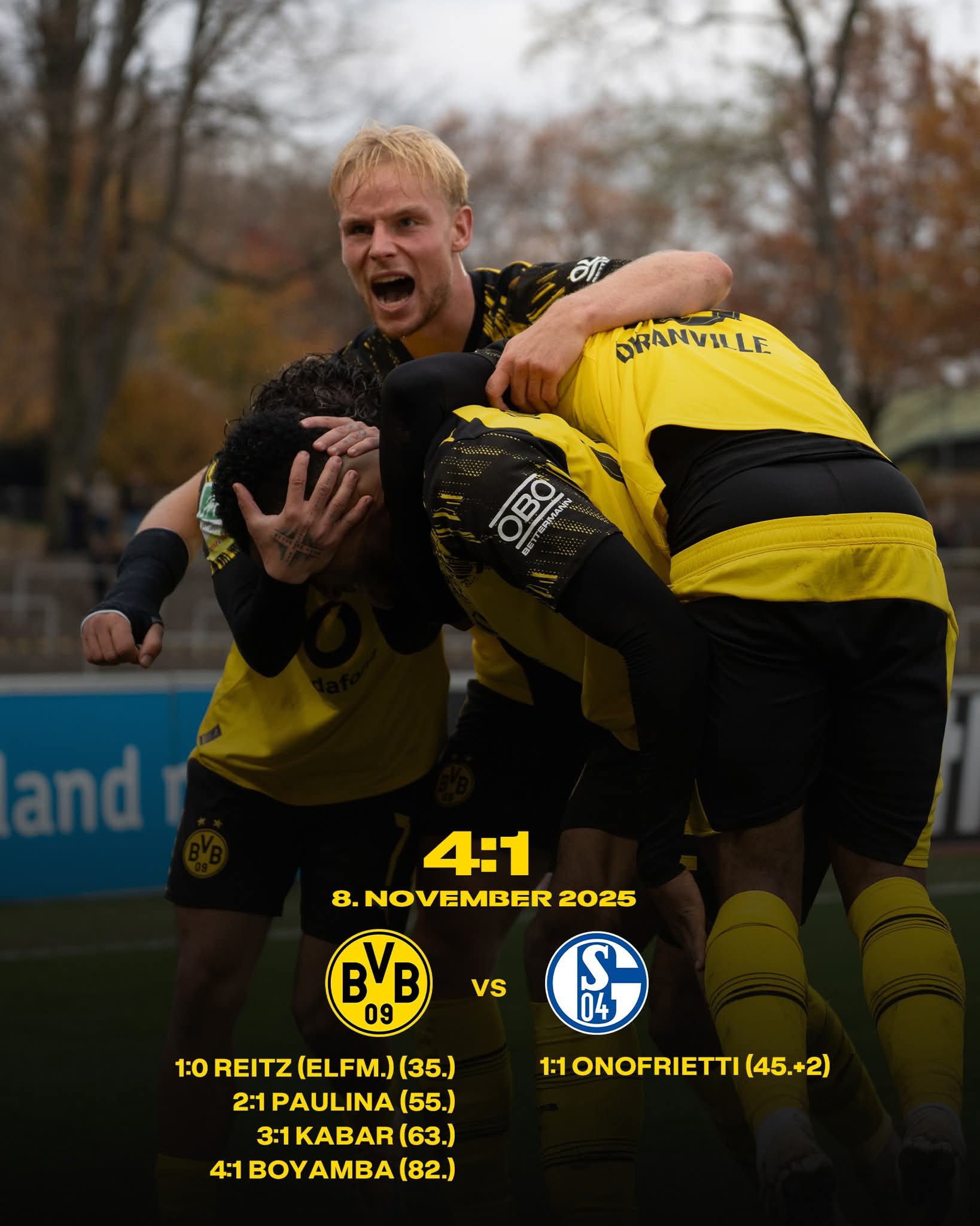 Am 8. November 2025 schrieb Borussia Dortmunds U23-Garnitur ein weiteres glanzvolles Kapitel in der Geschichte des Ruhrderbys. Mit einem beeindruckenden 4:1-Sieg gegen die U23 von FC Schalke 04 setzte das Team ein klares Statement auf dem Spielfeld und ließ die Herzen der Fans in Schwarz und Gelb höherschlagen. Von der ersten Minute an war die Energie spürbar, die Leidenschaft greifbar, und die Spieler zeigten, warum der BVB-Nachwuchs als Talentschmiede für die Zukunft des Vereins gilt.