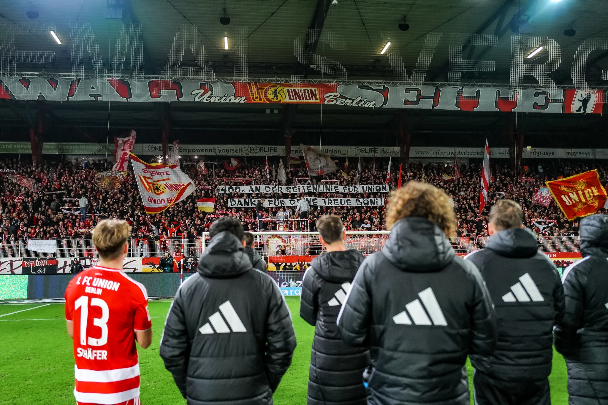Als das Spiel schließlich zu Ende war, blieb die Mannschaft geschlossen vor der Kurve stehen. Nicht aus Pflicht, sondern aus echter Dankbarkeit. Die Fans empfingen sie mit Applaus, Gesängen und Bannern, die die Verbundenheit zwischen Verein und Anhängern erneut unterstrichen. Es war ein Moment, in dem man deutlich sehen konnte, wie sehr beide Seiten einander brauchen und wie dieses besondere Verhältnis Union Berlin zu einem einzigartigen Klub macht.