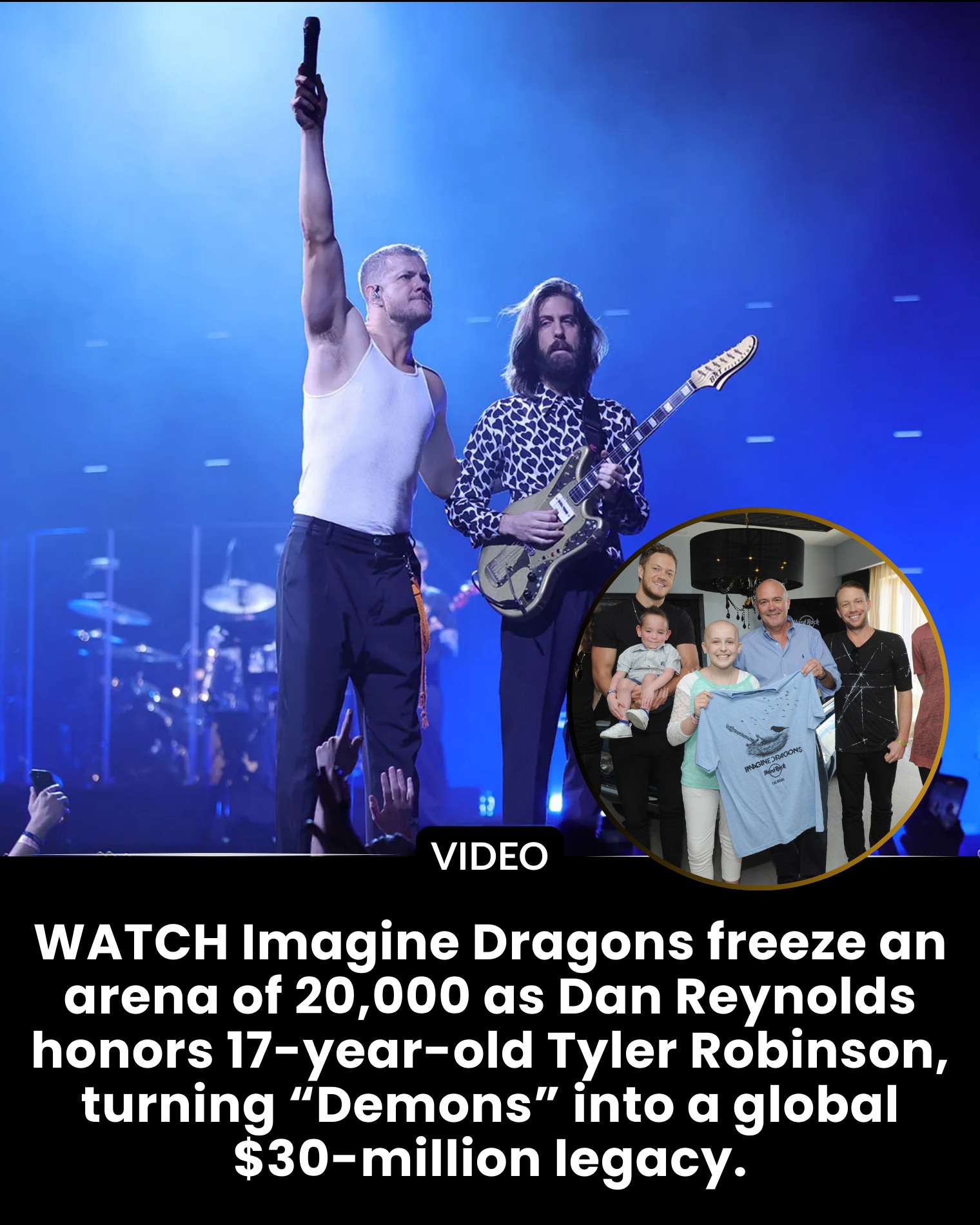 When Imagine Dragons step onto a stage, the expectation is always high-energy, thundering drums, explosive lighting, and the unmistakable roar of tens of thousands of fans. But on the night Dan Reynolds paused a packed 20,000-seat arena mid-performance to honor 17-year-old Tyler Robinson, the atmosphere shifted from electric to unforgettable. It became one of the most powerful moments in modern music history—one that has since grown far beyond a single emotional tribute and transformed into a global movement worth over $30 million.