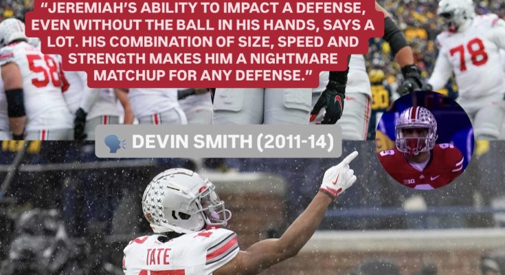 Former Ohio State star Devin Smith recently took the time to share his thoughts on some of the Buckeyes’ most promising rising talents, Jeremiah Smith and Carnell Tate. As someone who experienced the highs and lows of playing at the highest level of college football, Smith’s perspective carries a unique weight. His commentary on these two athletes is both insightful and revealing, shedding light on what makes them stand out and why they have captured the attention of Buckeyes fans everywhere. Among the two, Carnell Tate drew particularly high praise from Smith, who described him as “a true dawg,” a testament to his relentless work ethic, physicality, and determination on and off the field.