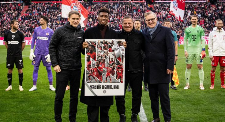Der Verein verabschiedete ihn mit warmen Worten. Auf dem Spielfeld überreichte ihm der Klub eine personalisierte Ehrentafel mit den Stationen seiner Bayern-Zeit, den gewonnenen Titeln und dem besonderen Highlight des Champions-League-Siegs. Dazu gab es eine kurze Ansprache des Vereinspräsidenten, der Comans Loyalität, Charakterstärke und Professionalität hervorhob. Selten sei ein Spieler so zuverlässig gewesen, wenn es in den entscheidenden Momenten darauf ankam. Coman erhielt Blumen, eine Fotocollage und schließlich eine letzte Ehrenrunde.