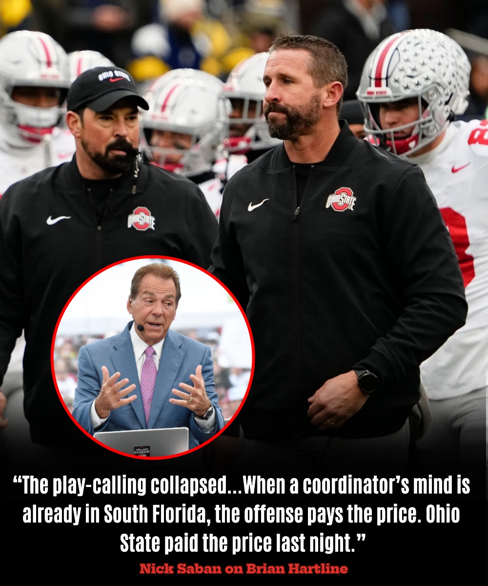 Saban’s words were directed squarely at Brian Hartline, the offensive coordinator for Ohio State, who is reportedly preparing to leave the program to take over as head coach at South Florida. According to Saban, Hartline’s mind was elsewhere, his focus divided between his current responsibilities and his looming departure. Saban did not hold back in his assessment, calling the offensive performance “so bad it was unacceptable” and attributing the Buckeyes’ collapse directly to lapses in leadership and focus. For a figure of Saban’s stature to speak so openly and bluntly about another program’s internal issues was virtually unheard of, and the sheer audacity of his remarks set the college football world ablaze.